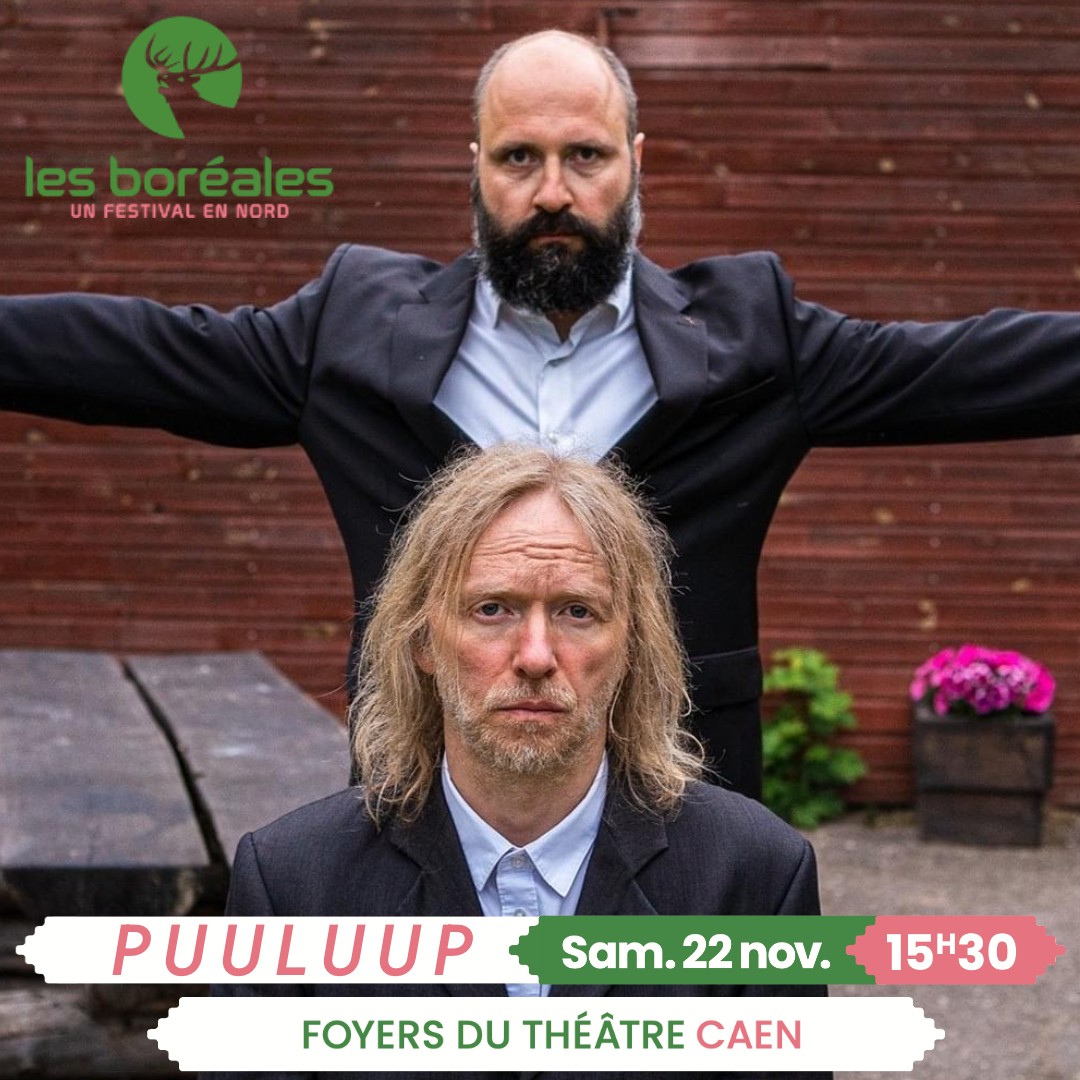 Le samedi, toujours, place à Puuluup dans les foyers du Théâtre de Caen, à 15h30. Le duo mêle musique traditionnelle et électronique, oscillant en permanence entre héritage et modernité. Tantôt dansant, porté par un rythme pulsé presque hypnotique, tantôt cinématographique et suspendu, leur univers joue avec le temps, l’espace et l’humour discret qui les caractérise.